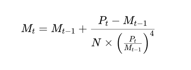 The McGinley Dynamic adjusts its smoothing speed using the ratio between current price and its own average.